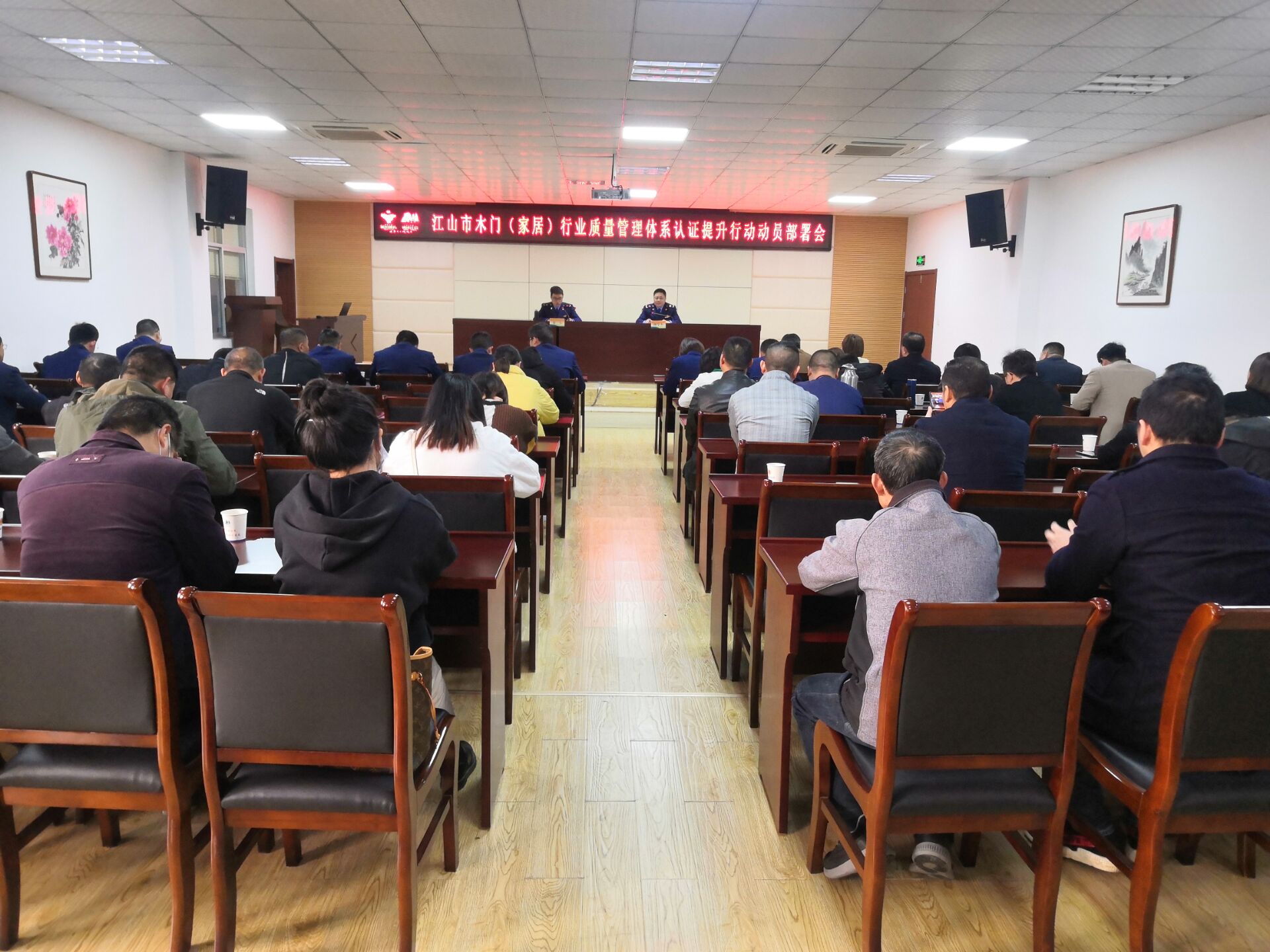 4月15日,方圆浙江公司派员出席了木门产业小微企业质量认证提升行动暨木门产品认证培训工作会议,并给参会企业代表进行了“方圆企业介绍+ISO9001质量认证标准知识要求”的现场PPT讲解。