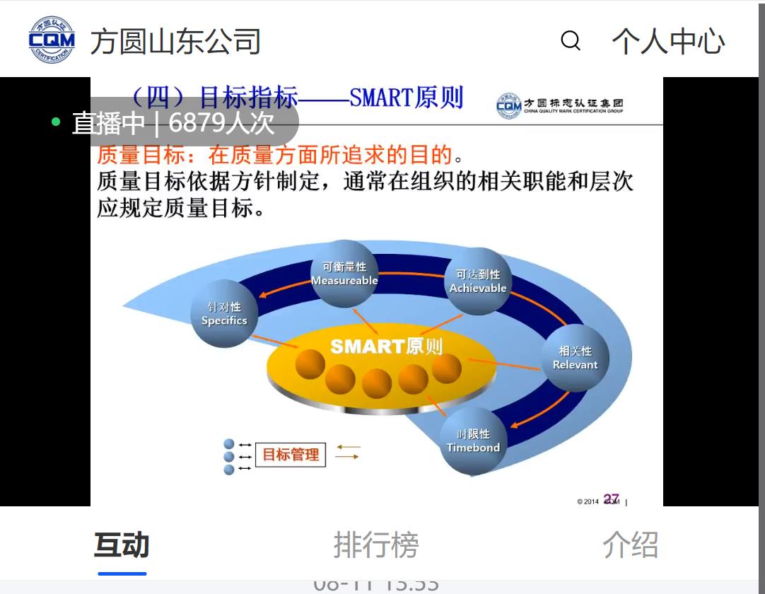 因疫情防控需要,本次培训采用线上培训模式,由方圆山东有限公司资深专家曲秀华老师授课。曲老师详细介绍了质量管理体系概论和GB/T19001-2016《质量管理体系 要求》标准理解及实施,并结合实际案例讲解了小微企业如何建立质量管理体系。本次培训得到了省市场监管局、临沂市市场监管局、聊城市市场监管局、潍坊市市场监管局及县区市场监管局的大力支持,截至15:00,登录平台学习人次达到6879人次,培训效果显著。