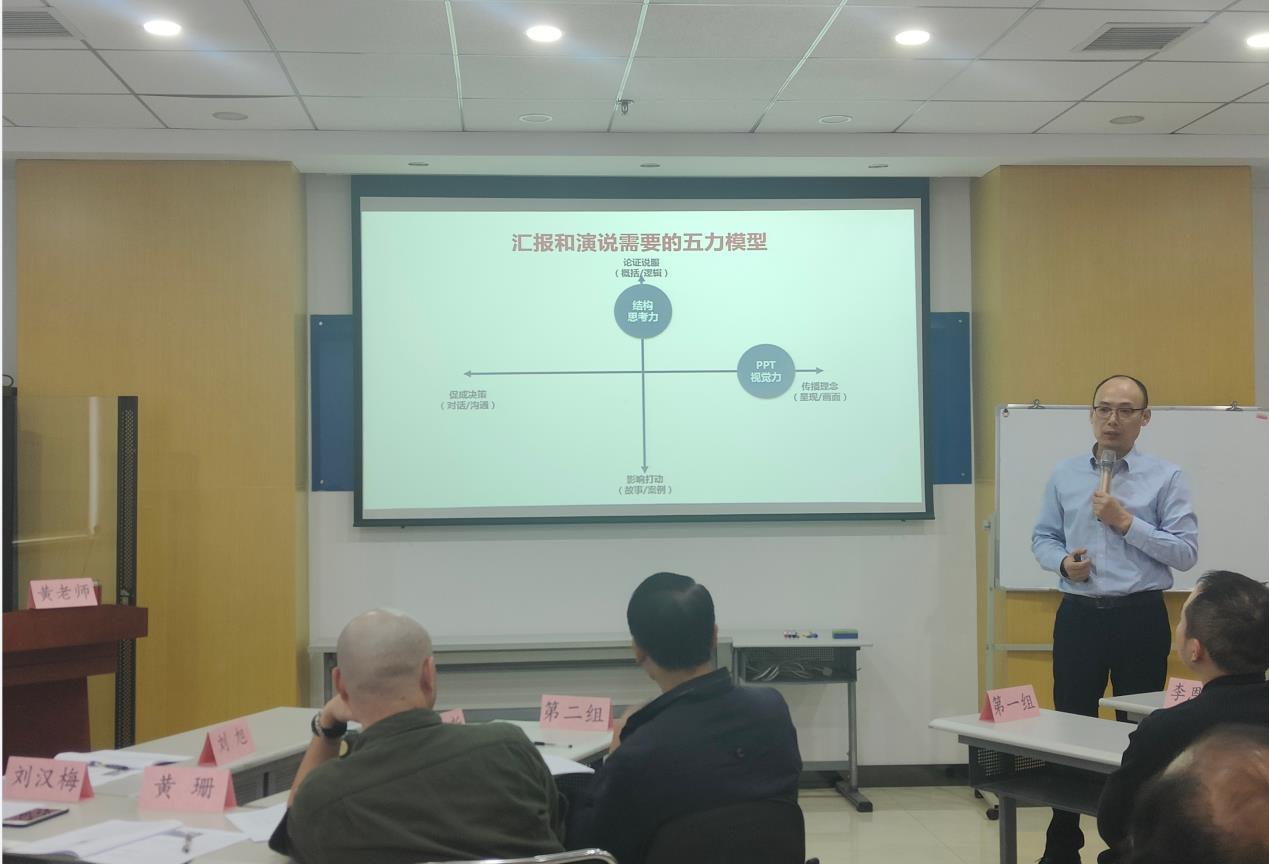 培训由武汉大学人力资源管理培训中心承办。主讲老师从“结构思考力、PPT视觉力、自身表现力、现场互动力、语言感染力”五个方面展开授课,授课内容丰富,旁征博引,幽默风趣。培训现场,互动频繁,气氛融洽。老师讲得生动,大家听得轻松,收获颇丰。