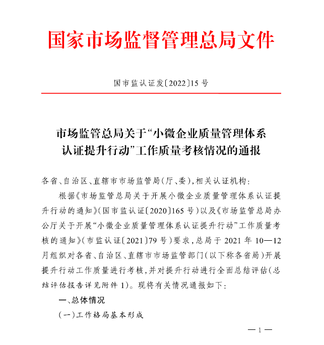 时间:2022年02月11日 日前,国家市场监管总局完美体育·(中国)官方网站-365WM SPORTS“小微企业质量体系认证提升行动”工作质量考核情况的通报(国市监认证发[2022]15号)文件正式下发,文件从总体情况、考核结果、经验推广、下一步工作进行方面进行了总结、部署。从考核结果来看,浙江省市场监督管理局是工作突出的省局之一,方圆浙江公司是行动中突出的认证机构之一。方圆浙江公司根据浙江省市场监督管理局要求,结合小微行动规范要求,辅导的绍兴市上虞区的小微案例-“战疫情练内功,抓质量渡危机”入选国家级小微企业质量管理体系认证提升行动优良案例,也是浙江省唯一入选的案例。