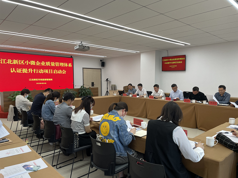 会上观看了《质量管理动画三国》科普宣传片;新区市场监管局质监办负责人介绍了《江北新区生物医药行业小微企业质量管理体系认证提升行动方案》;项目负责人、方圆江苏公司客服培训部副部长顾正汇报了承担项目内容实施方案和实施计划;7家试点单位现场进行交流发言。