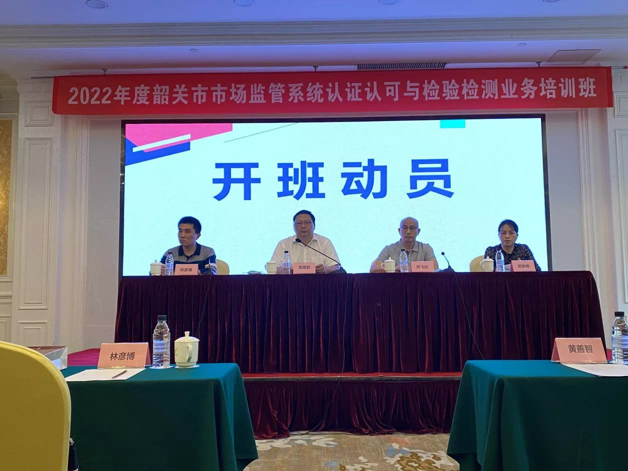 韶关市市场监管局黄善智副局长为本次培训班致辞并进行开班动员,表达了对参训人员的期盼,要求大家深入思考,学以致用,不断提高自身素质,为检验检测行业的健康发展贡献力量。