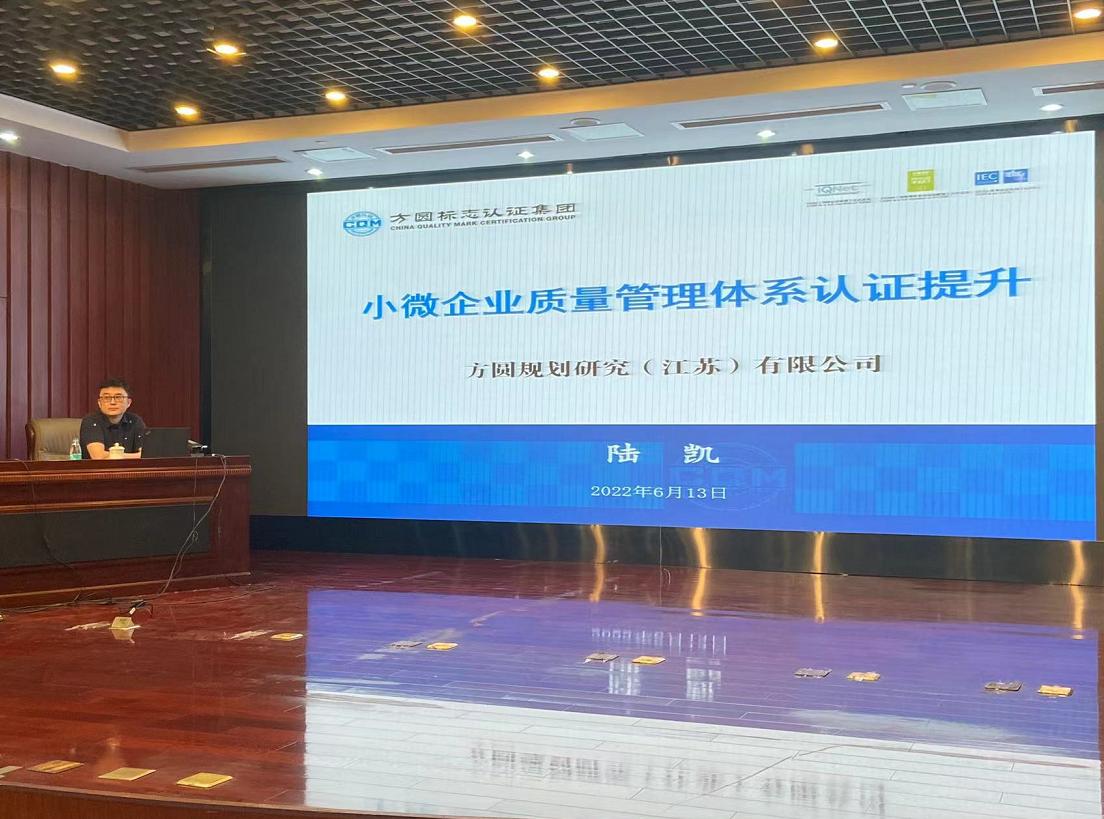方圆规划研究(江苏)有限公司应邀参加盐城市小微企业质量管理体系认证提升推进会暨专题培训班